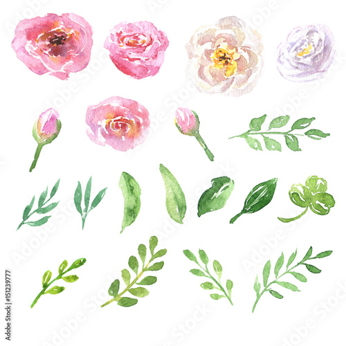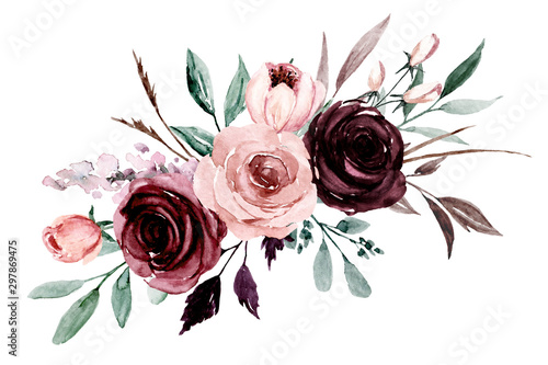 Watercolor dusty pink and purple flowers clipart set: